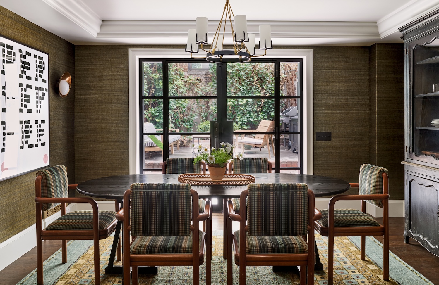 On the garden level, the kitchen and dining rooms are now filled with light thanks to new metal-and-glass patio doors and color-adjustable Ketra lighting.