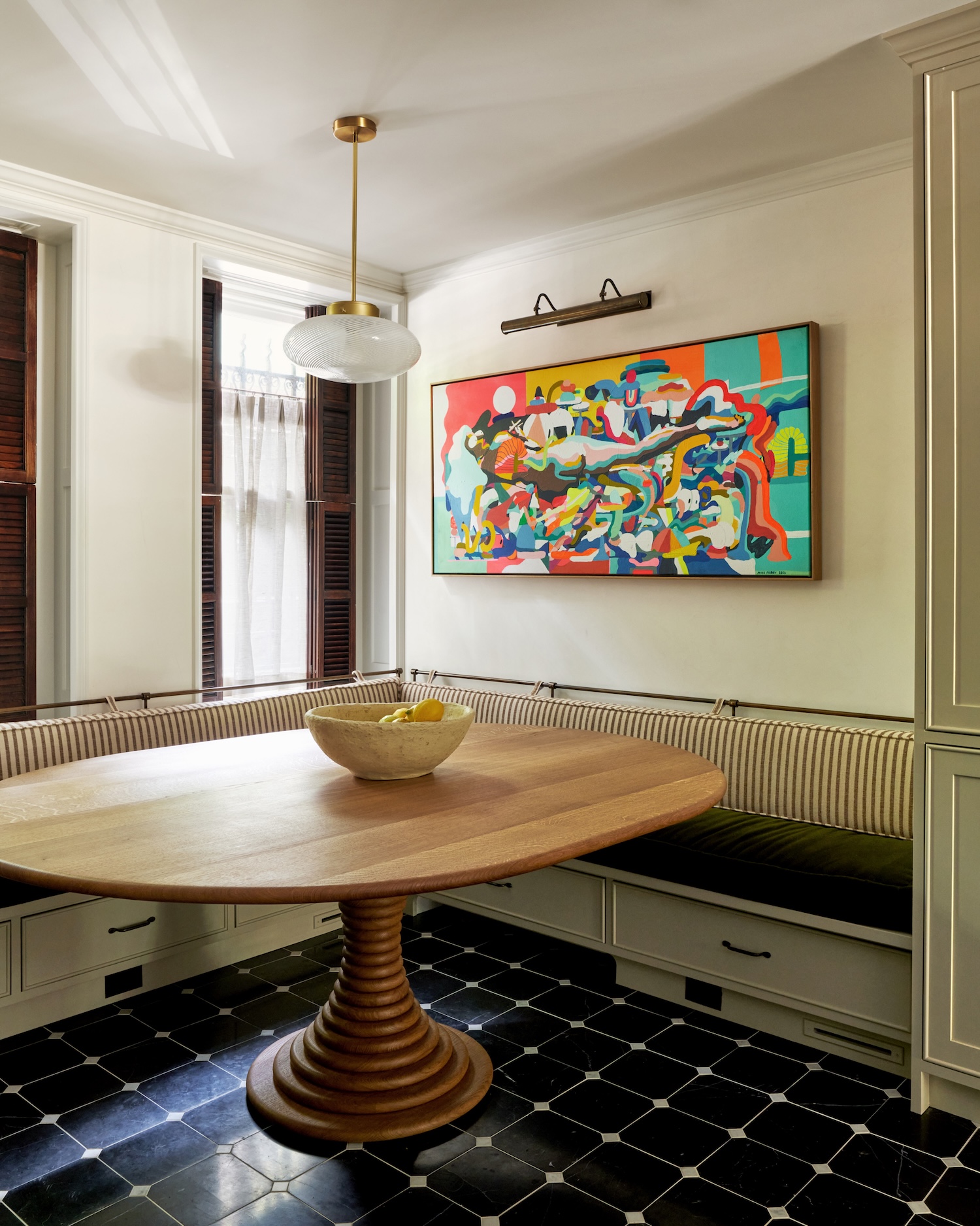 Because this is the clients’ primary residence, they wanted it to feel distinctly like their city home, sleeker and more sophisticated than their upstate house, which serves as a country escape. While they were drawn to a more refined aesthetic, comfort and functionality were equally important. We designed a cozy den for movie nights, complete with a hidden bar, and a formal living room for entertaining friends and family. Dining was also a priority, so we incorporated both a casual breakfast nook for working or informal meals and a more formal dining room.