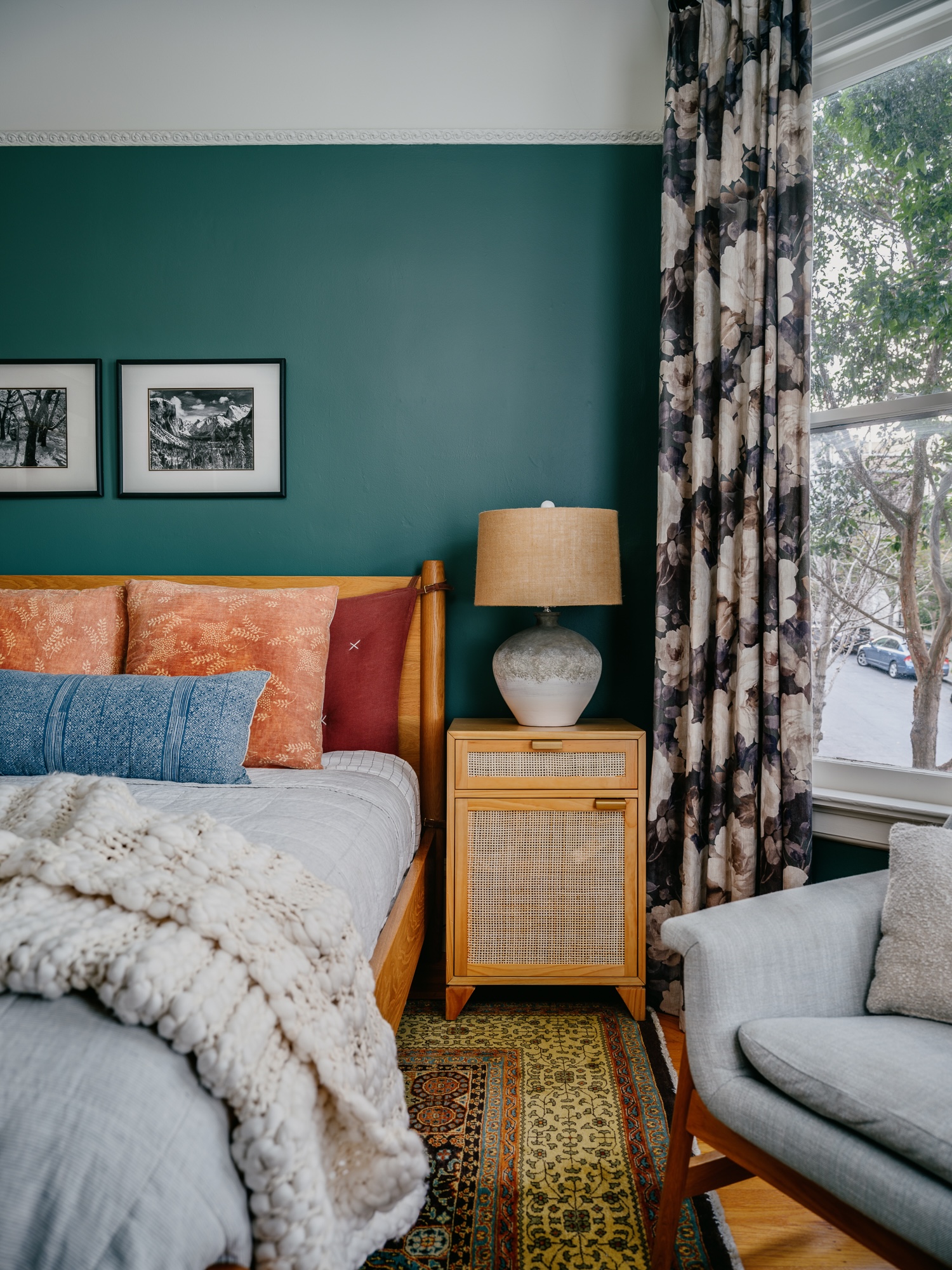 Jaclyn Christensen Design brought a refined mix of historic charm and modern eclecticism to this San Francisco home. Captured through the lens of Christopher Stark the rich jewel tones, layered textures, and a bold use of pattern infuse the compact home with personality. Keep reading to see how Jaclyn’s thoughtful design transformed limited square footage into a space that feels both elevated and effortless.