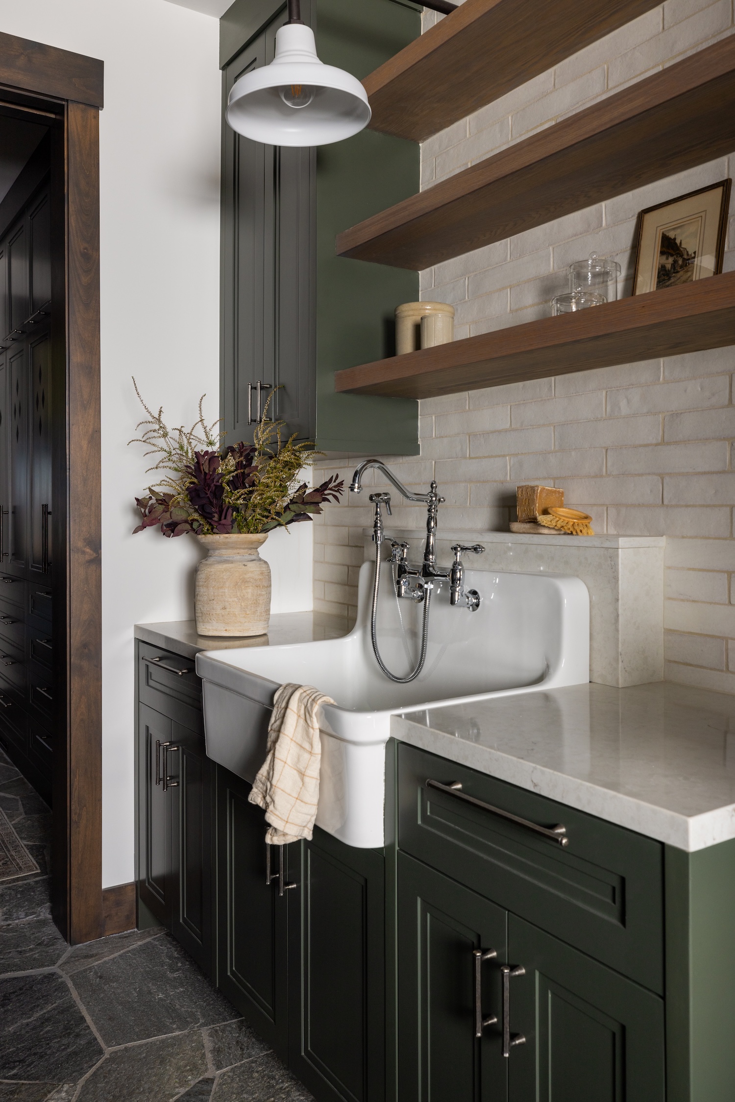 From Miche Victoria Interior Design… This project was particularly meaningful for us, as we had the privilege of working with these clients on two previous homes. This was their third collaboration with us—a dream home built from the ground up on a beautiful property they had acquired. It was designed as their second home, a true escape from their fast-paced lives. The homeowners have a large, close-knit family, including three married daughters, two grandchildren, and two beloved labradoodle companions. The husband is an avid outdoorsman, while the wife has a deep love for creating warm, inviting family spaces. Their vision was a home that embraced the charm and nostalgia of an old-fashioned mountain lodge, but with a more transitional and curated approach.