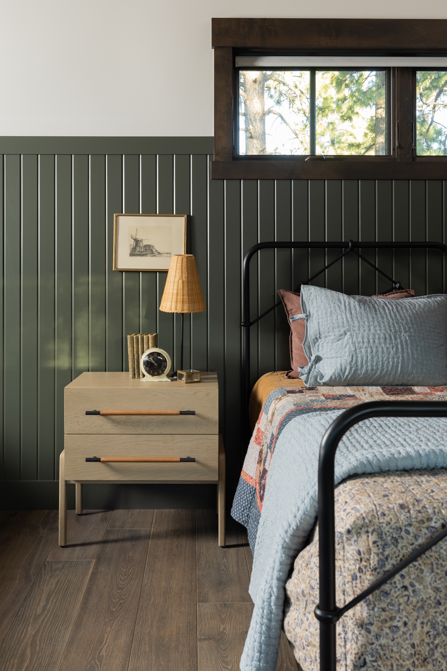 The home’s scale was a major design consideration. Every element, from fireplace mantels to ceiling beams and lighting fixtures, had to be carefully proportioned to fit the volume of the space while maintaining warmth and intimacy.