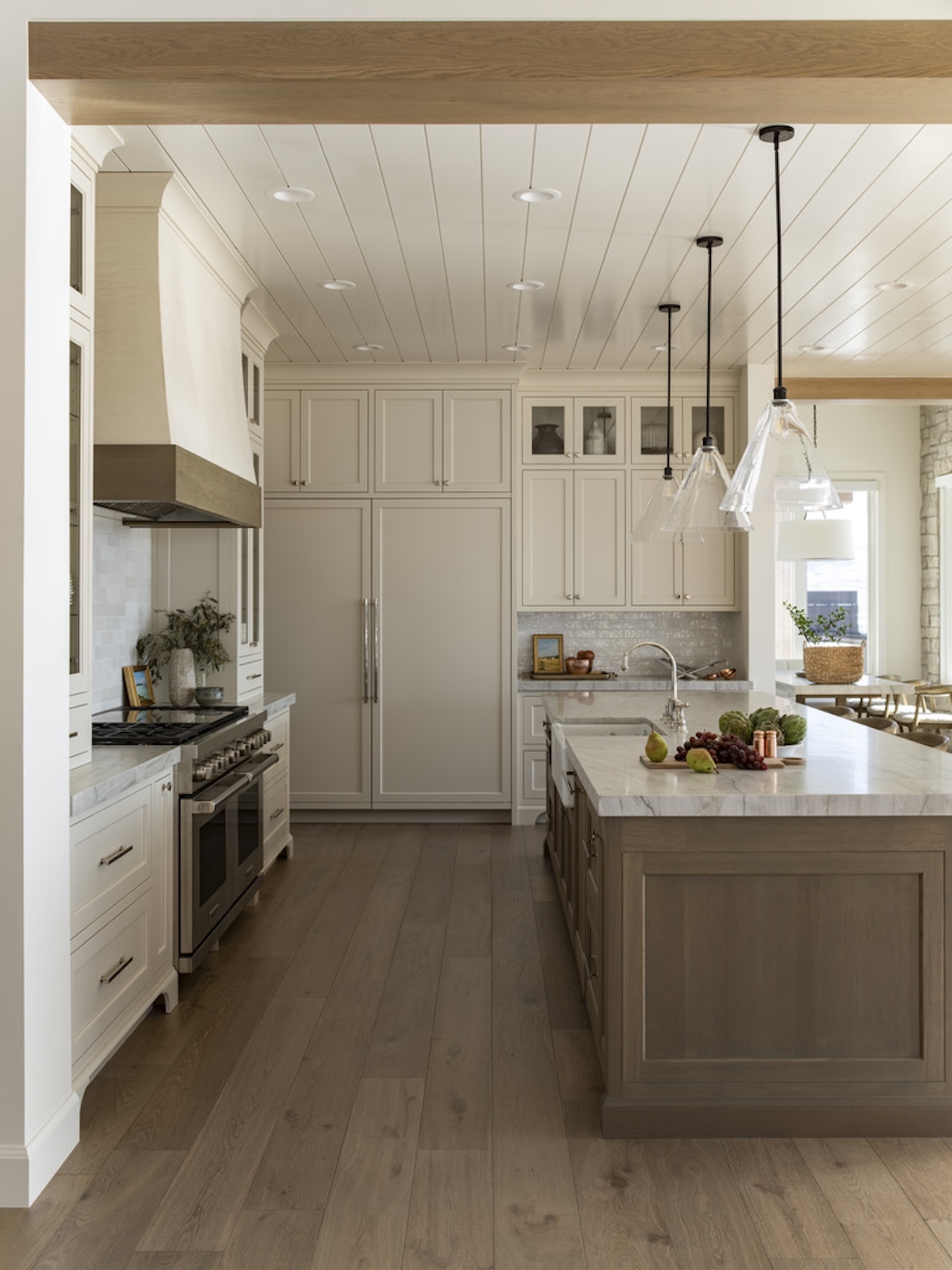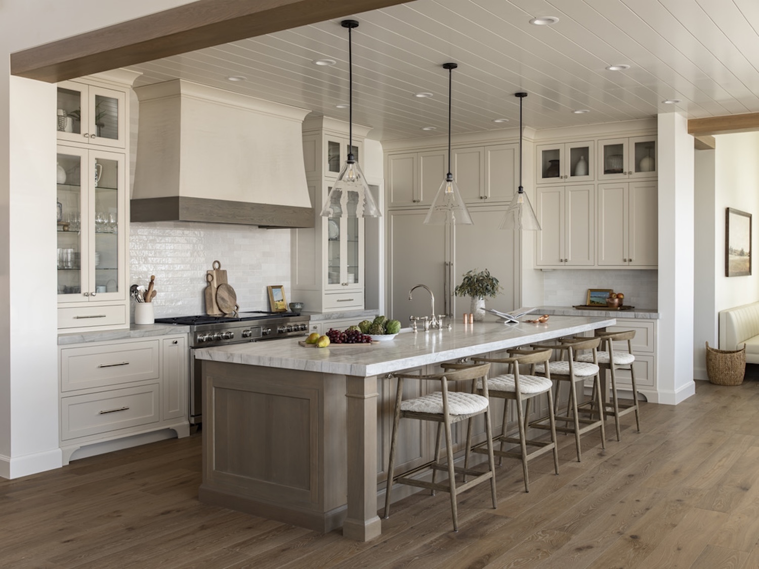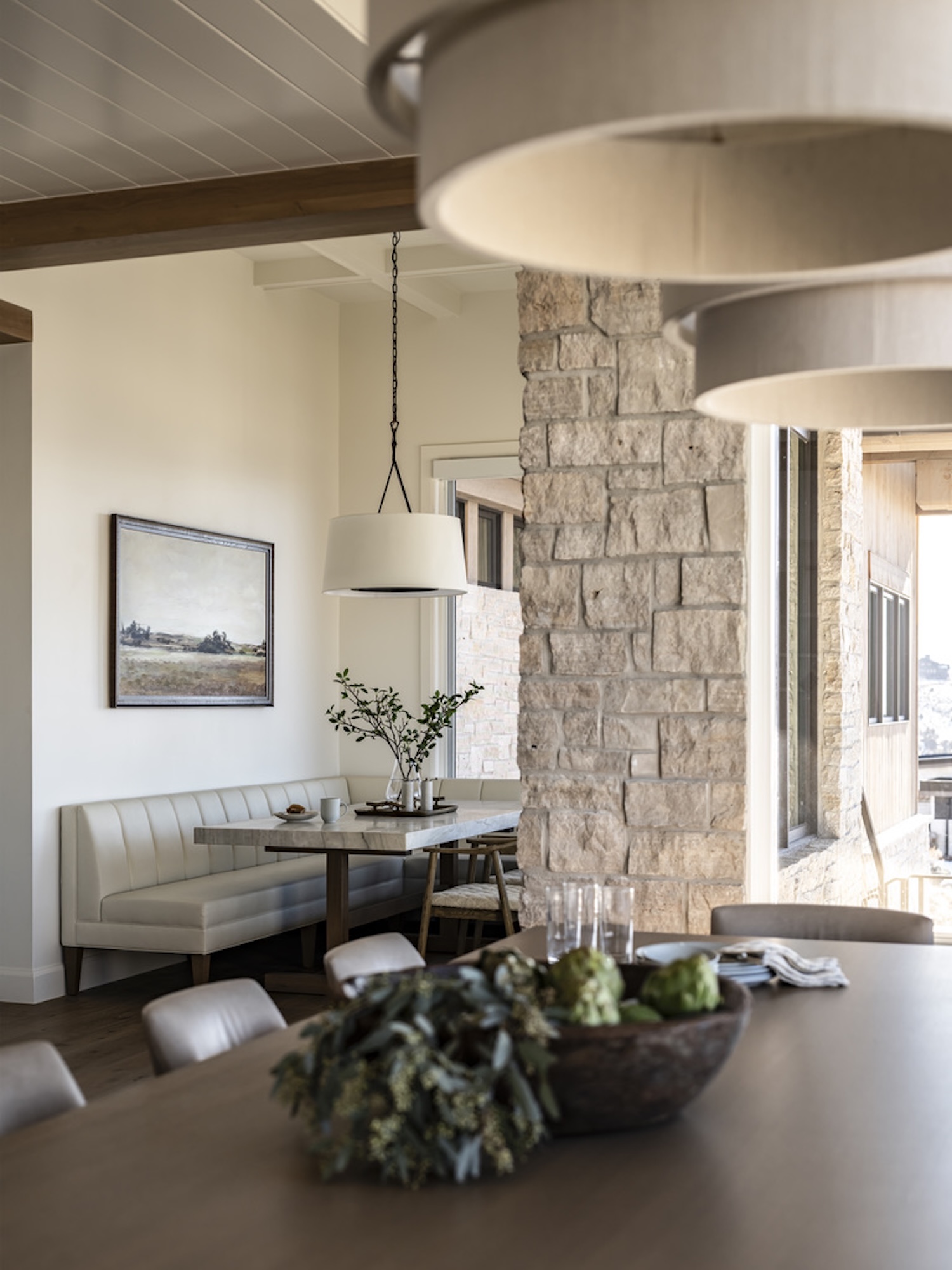 From Kimberly Parker Design… This Modern Heritage retreat in the mountain community of Red Ledges blends timeless architecture with contemporary comfort, creating the ultimate family getaway. At the heart of the home is a light-filled kitchen with a large quartzite island, custom cabinetry, and an adjoining butler’s pantry designed for effortless entertaining. A cozy built-in banquette connects to the dining area, offering the perfect spot for family gatherings.