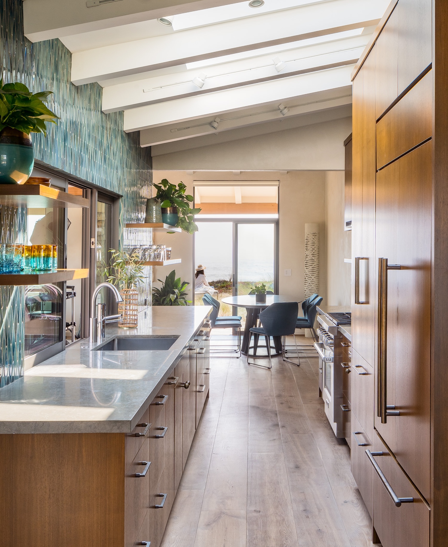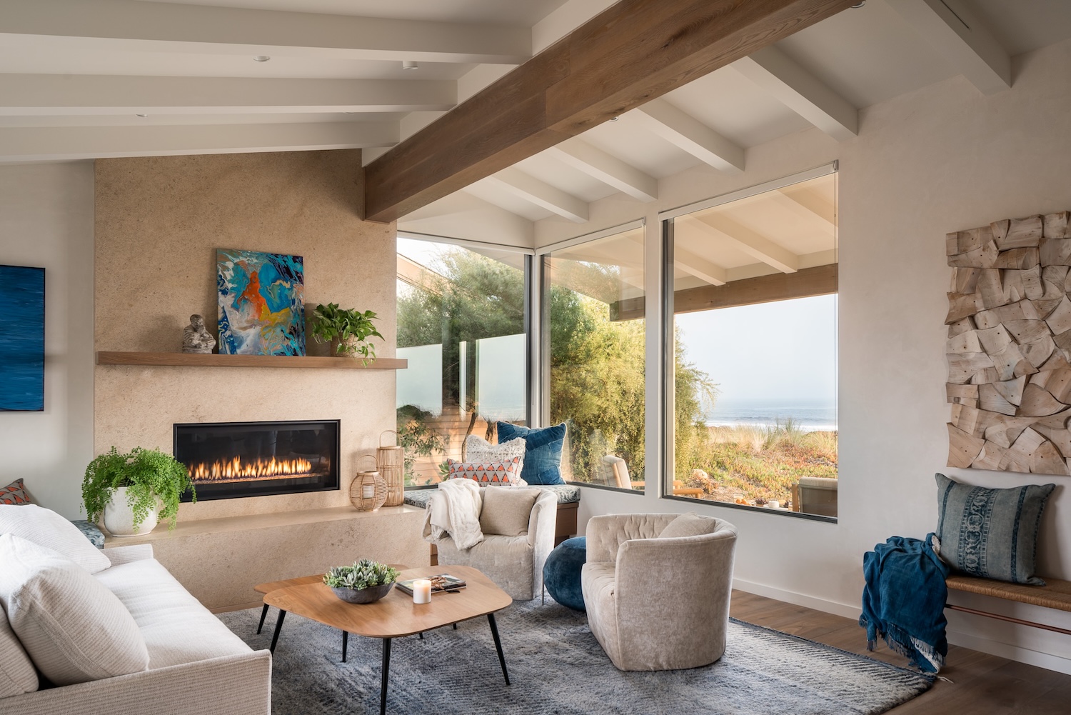 Before the remodel, the home was a relic of the 1970s—complete with plywood cabinets, Formica countertops, single-pane windows and doors, and a wood-burning fireplace. The homeowners worked closely with the design team to transform the home into a reflection of serenity—one that celebrates both art and nature in equal measure. They were fortunate to be able to move into the house during the pandemic and found comfort and healing in the surrounding beauty of Stinson Beach.