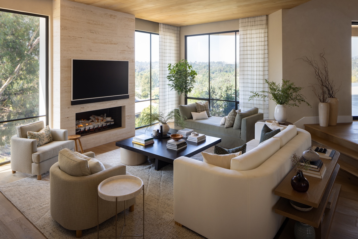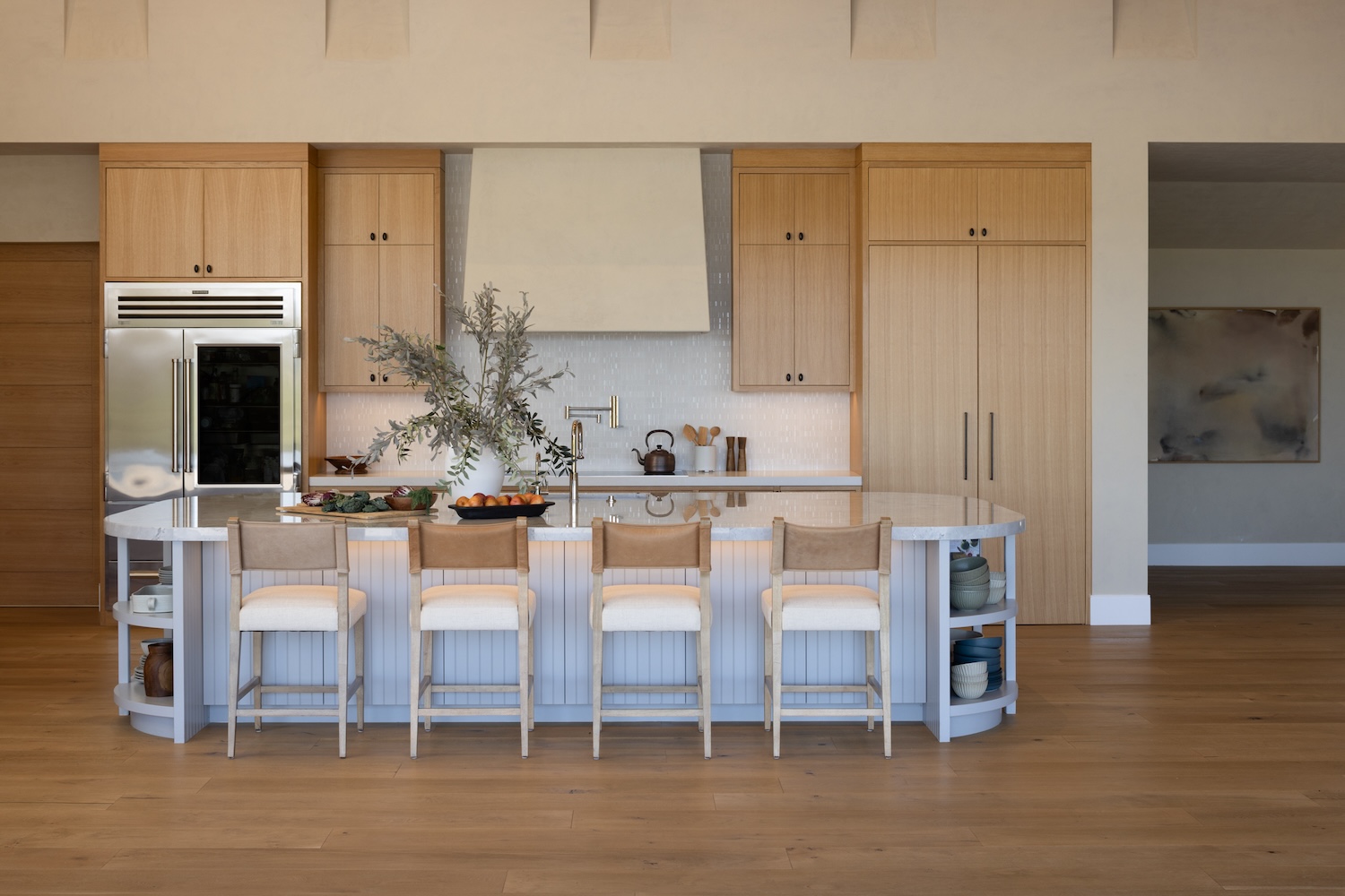 Set against the rolling hills of Fairbanks Ranch, this classic California ranch-style home reflects the grounded yet refined lifestyle of a local family and their chocolate lab, Powder. Tidal Interiors brought the family’s vision to life with a thoughtful mix of natural textures and by creating the heart of the house, a sunken great room invites gathering with its custom iron windows with sweeping views of the zero-edge pool and stables beyond. Captured by photographer Nader Essa, this home gracefully blurs the lines between indoors and out, honoring the easy rhythms of Southern California living.