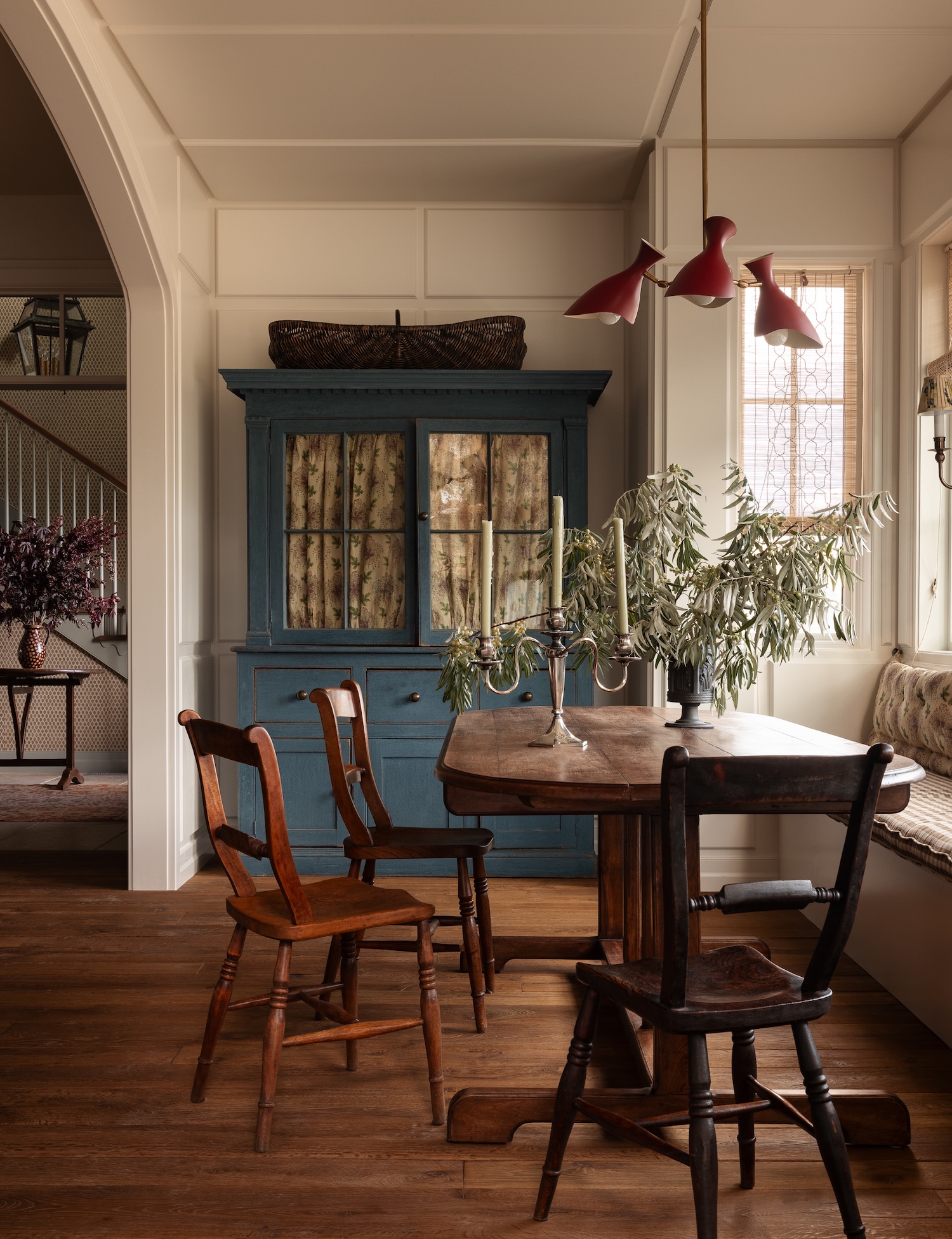 Their eldest daughter’s bedroom is cocooned in wallpaper, with its darling swoopy ceilings, and little hidden built-in nook where the three sisters curl up and cuddle.