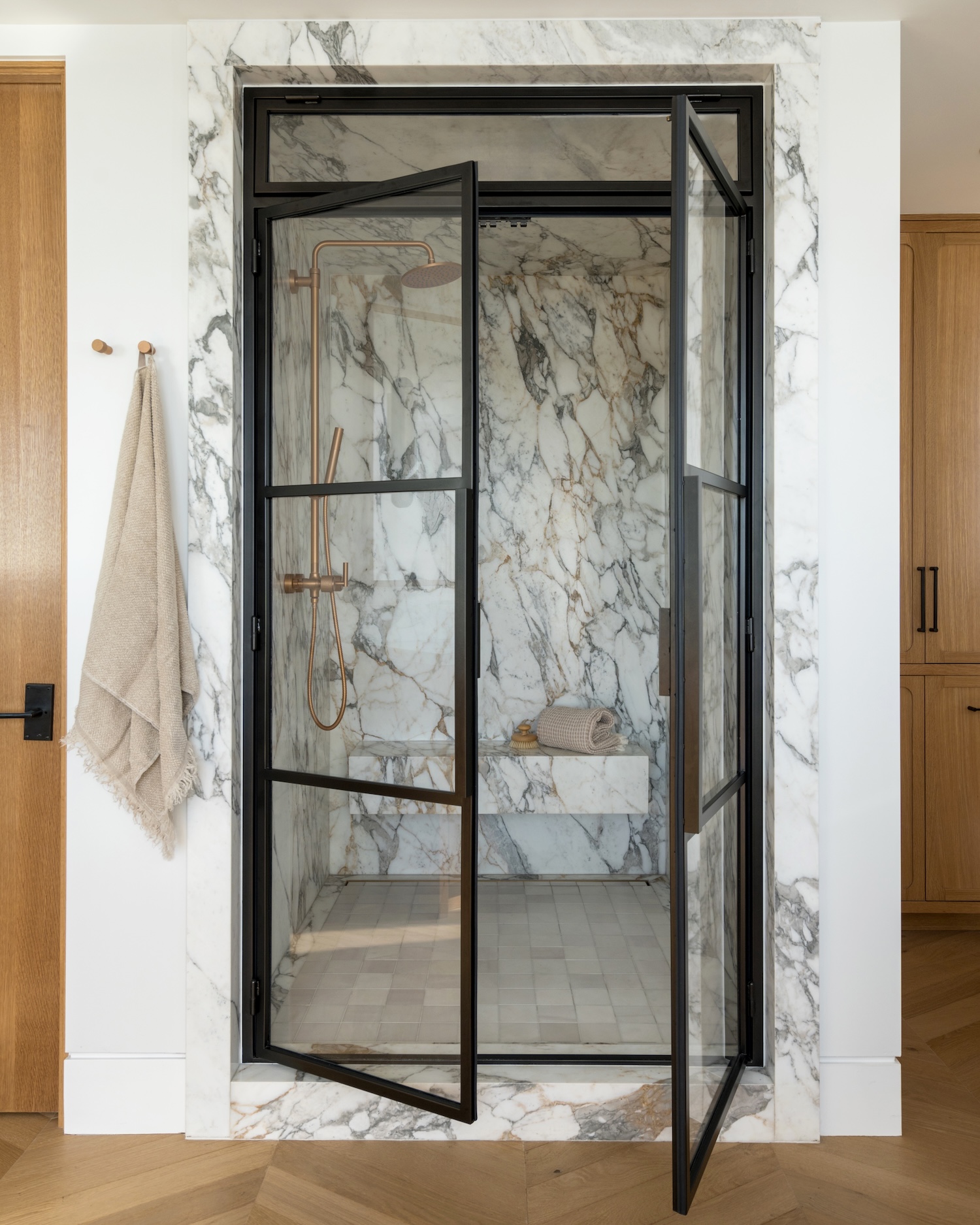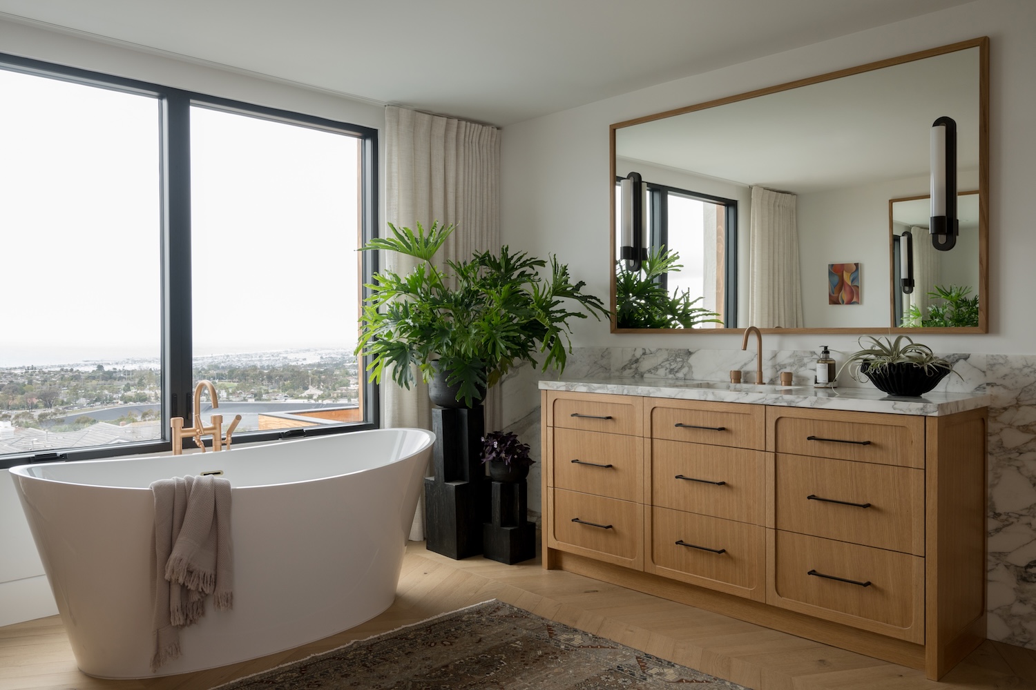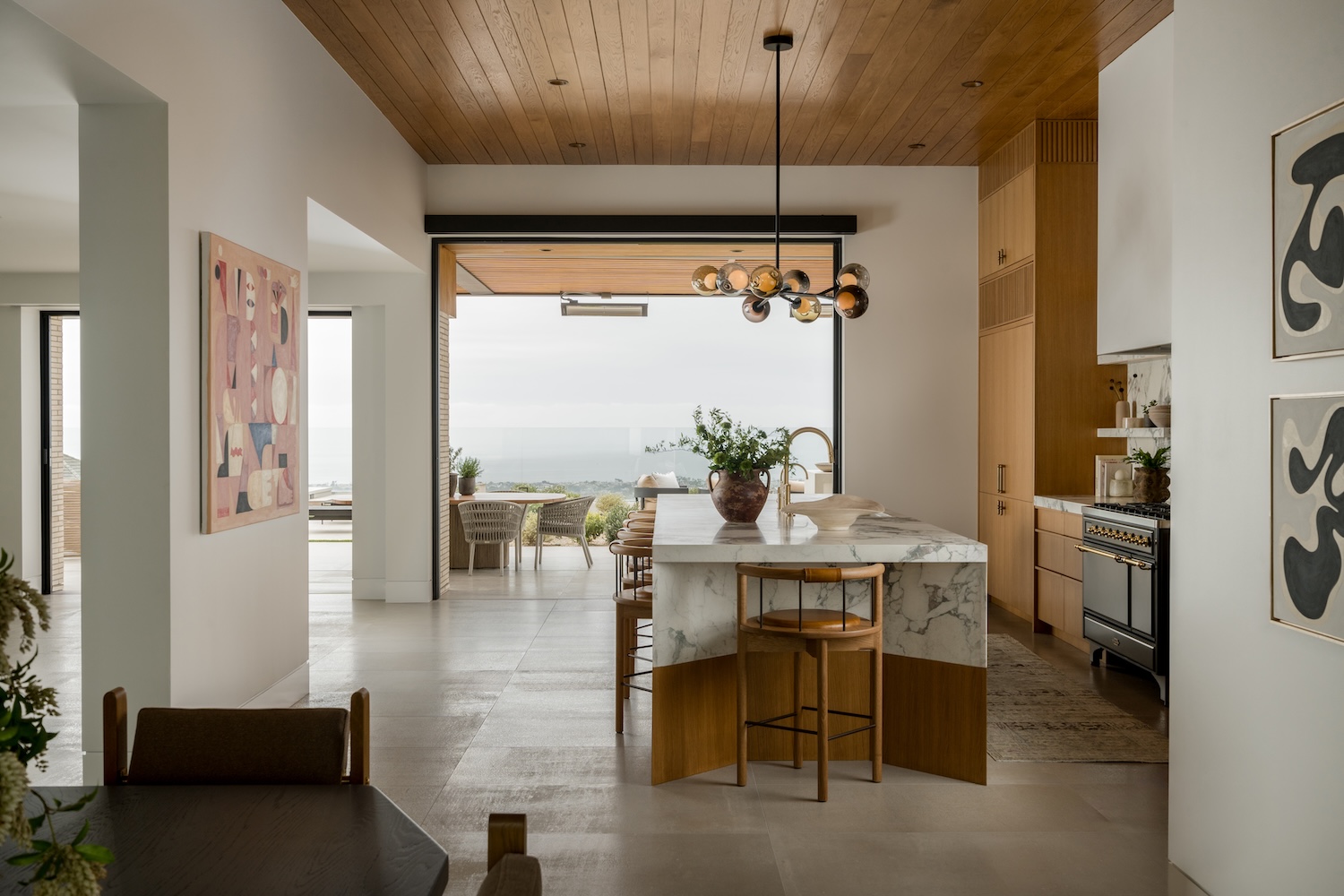 Perched high on Spyglass Hill, this home has earned the name “See-Through Spyglass” for the uninterrupted ocean view that greets you the moment the front door opens. Designed by Erika Marini of FIXE Design House and photographed by Charlotte Lea Photography, this minimal modern coastal project draws unexpected inspiration from the client’s love of fashion. Hints of the client’s wardrobe appear in the colors, finishes, and custom touches, giving the Newport Beach home its uniquely tailored character.