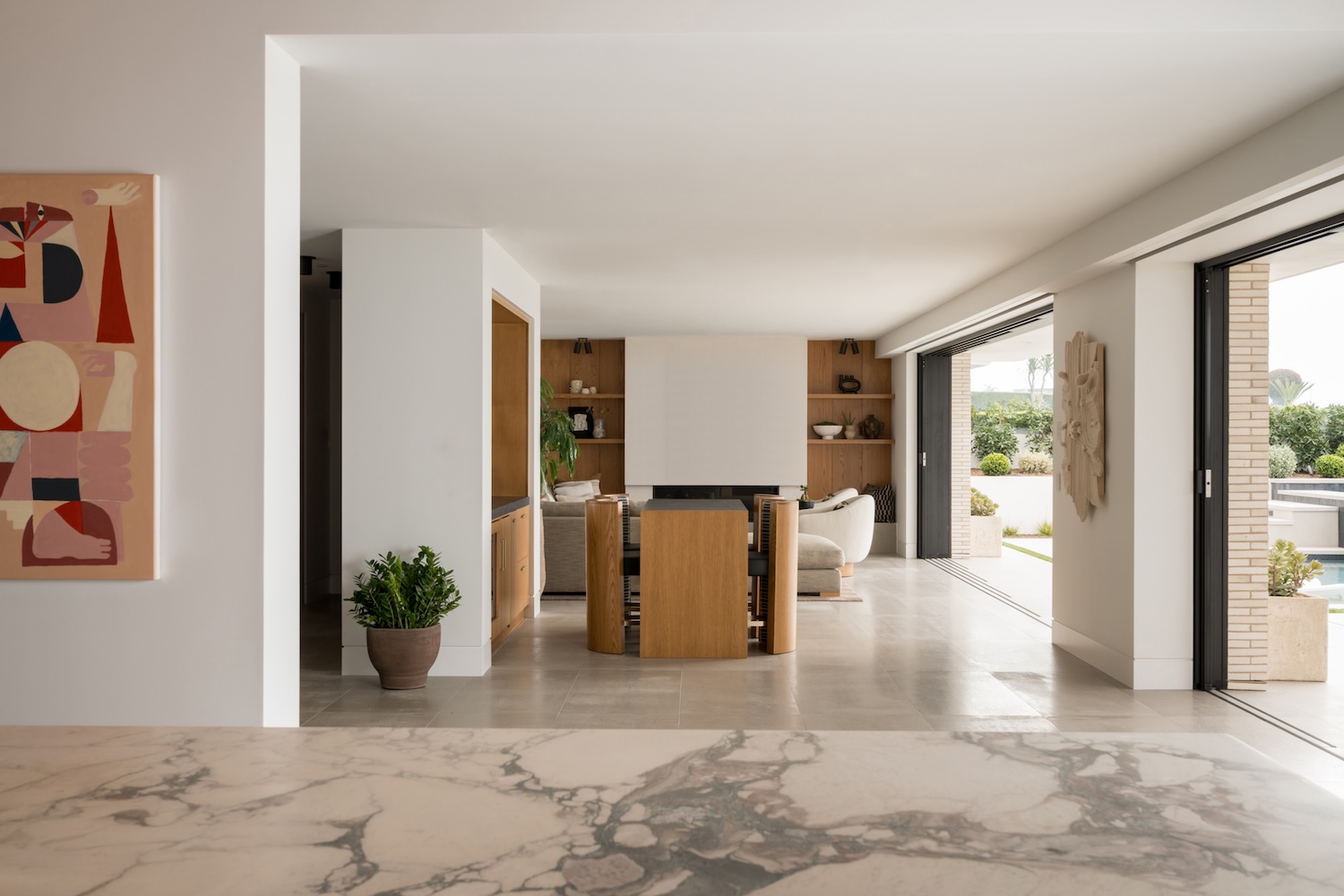 As we worked to create a seamless indoor-outdoor environment, it became imperative to maintain design continuity. The pool and backyard sit just steps from the beautiful glass doors that disappear to reveal the ocean. What emerged is a unified environment where every material, view, and moment feels naturally linked from the front door to the ocean beyond.