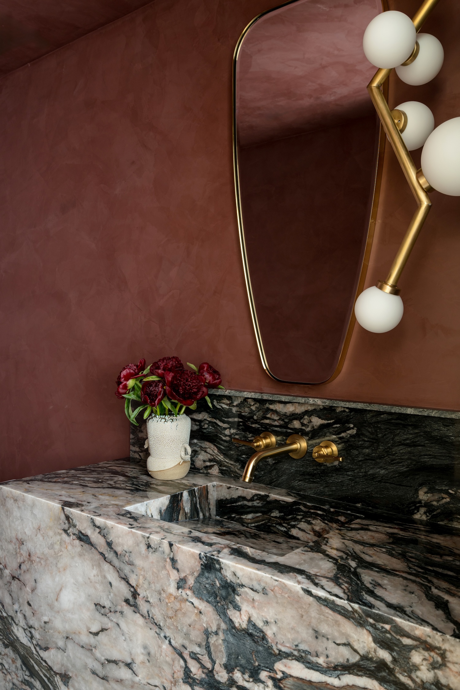 Our client is not afraid of color or taking chances and was always mindful of respecting our design process. Collaboration between client and designer is intimate and crucial to creating a successful outcome. My first career path began in fashion design and eventually led me into interior design. Because our client shares a love for fashion, we incorporated colors from her wardrobe into the wallpaper and used a moody Roman clay plaster in the powder room. Her father was a jeweler, so we focused on bespoke furnishings that became our jewels.