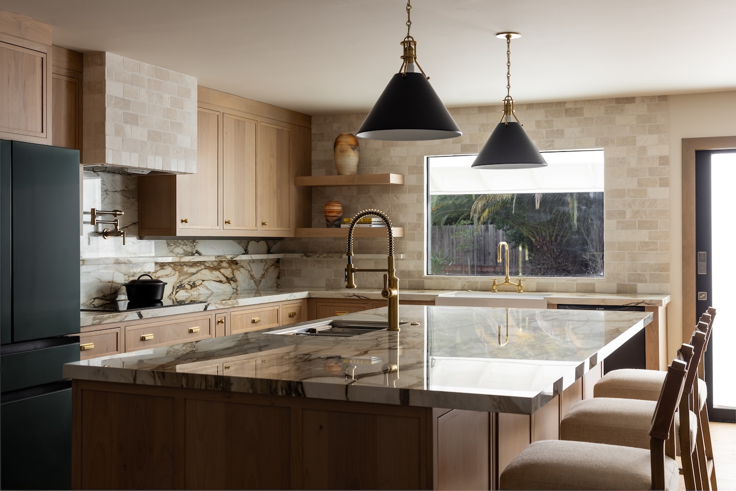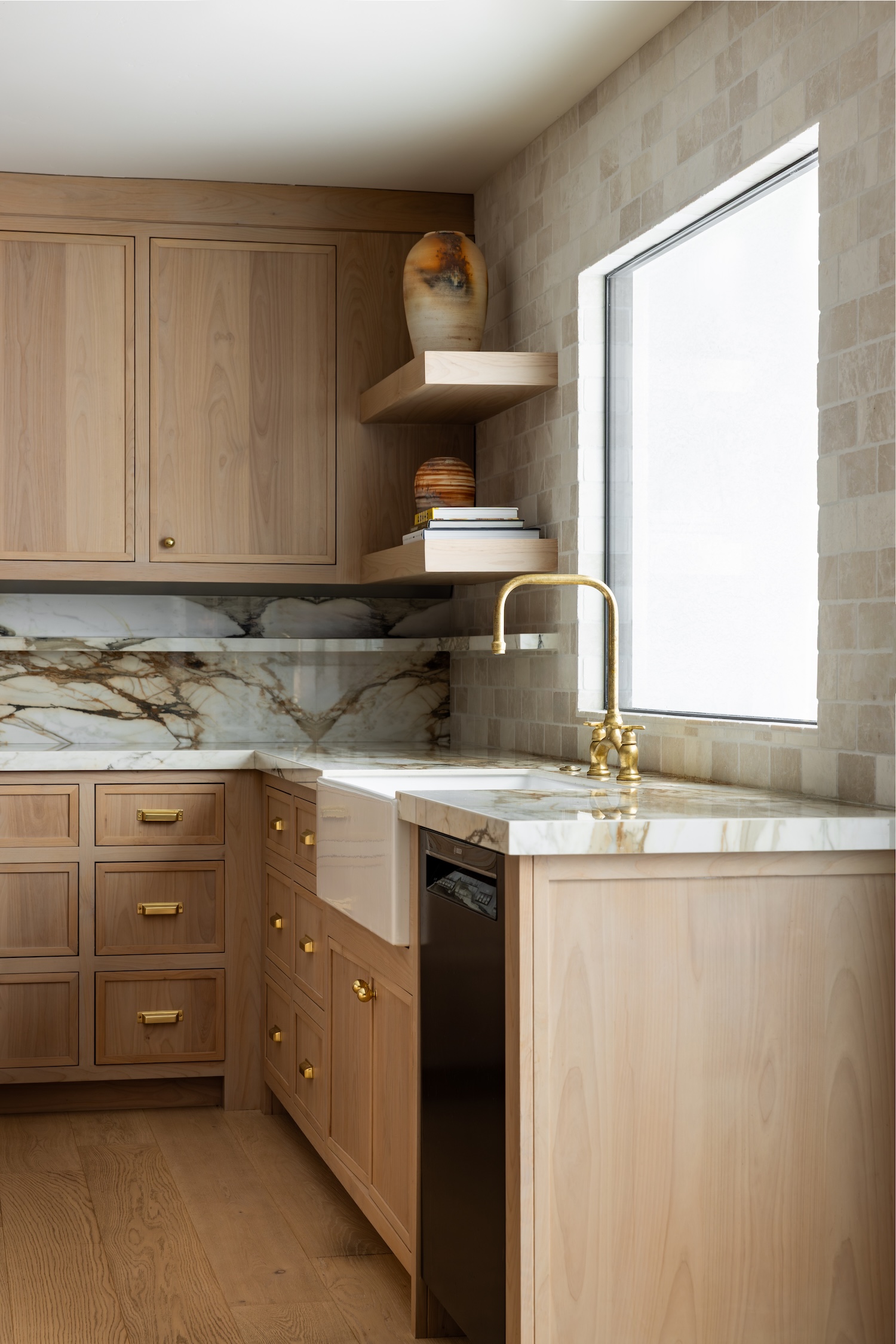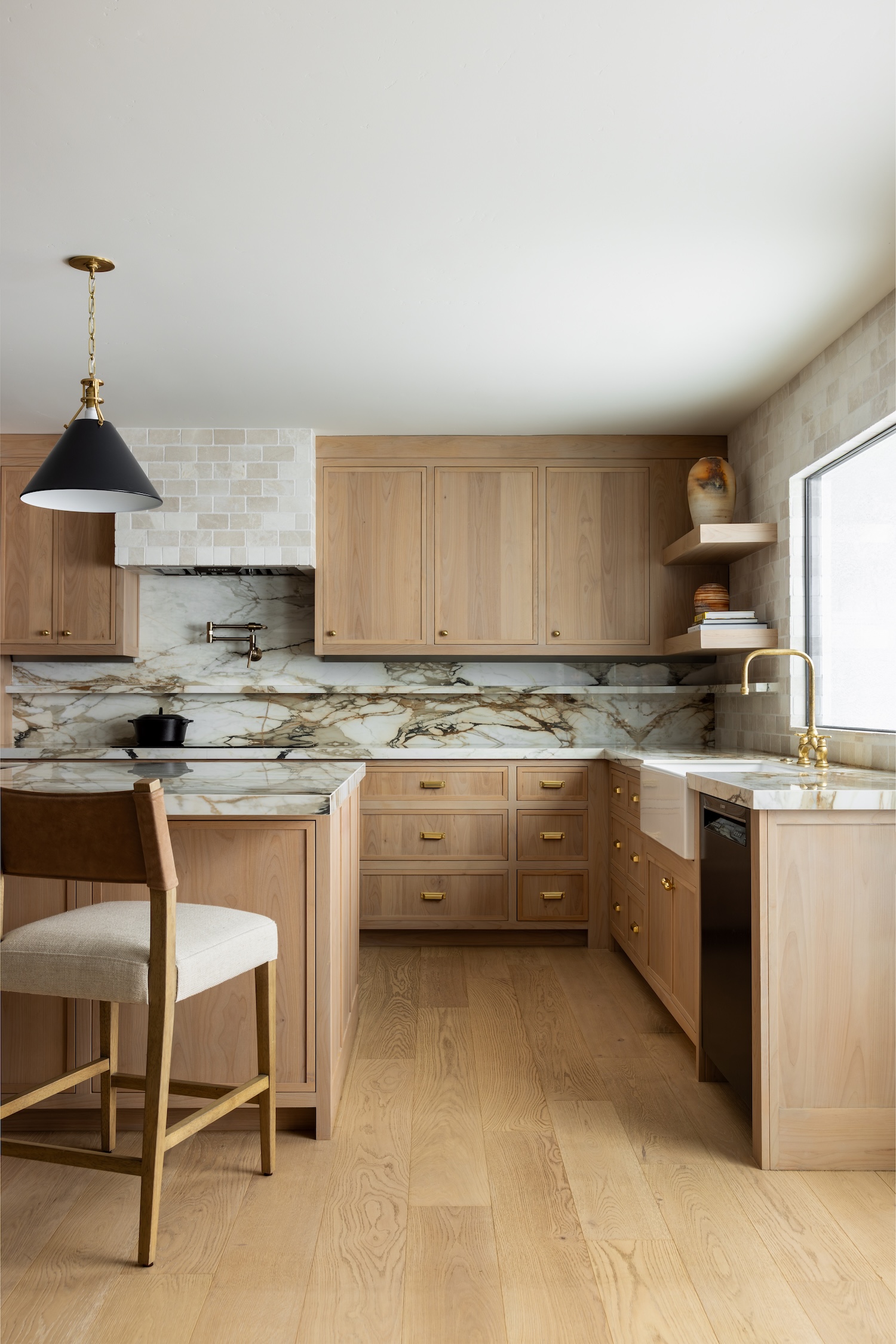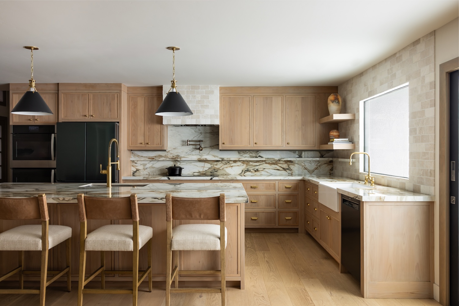 From Lulu Designs The design of this extensive remodel, showcasing light wood cabinetry, dramatic stone countertops, and refined brass accents, is what we call “Modern Organic Haven”. The blend of natural materials, contemporary fixtures, and warm, inviting tones, present in each space of the home we designed, took eight months to complete. Because of the new interior and exterior doors, floors, kitchens, baths, and furnishings, we touched each space and customized this new home to work for a future family of four.