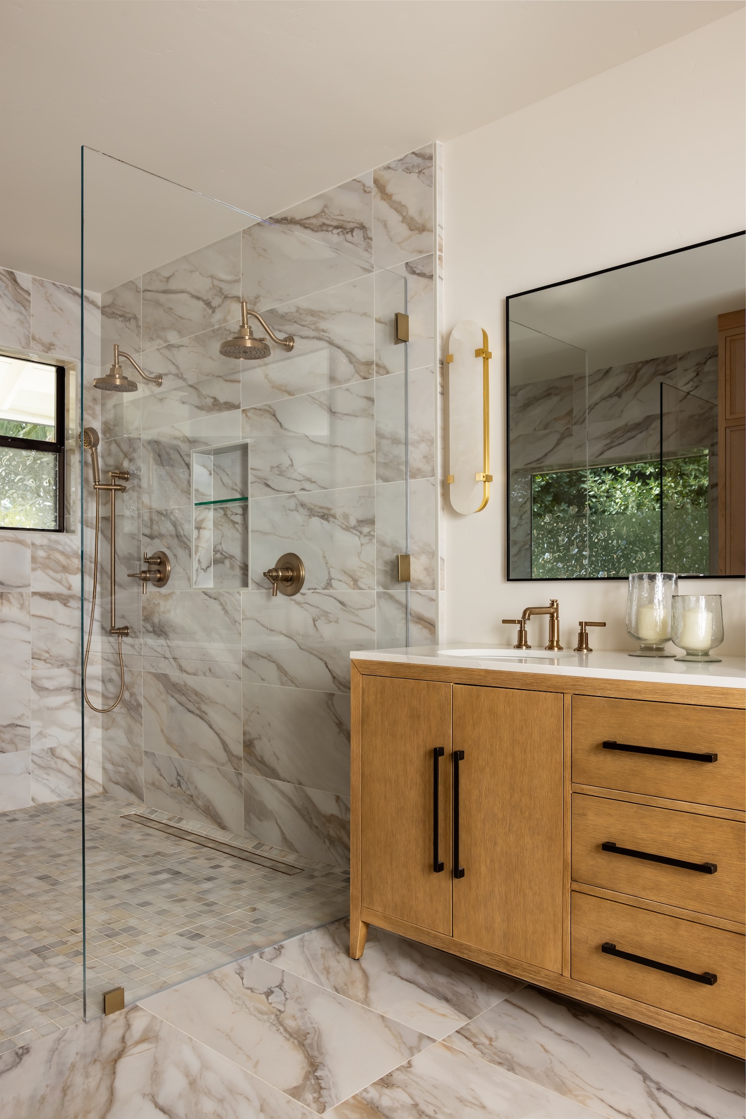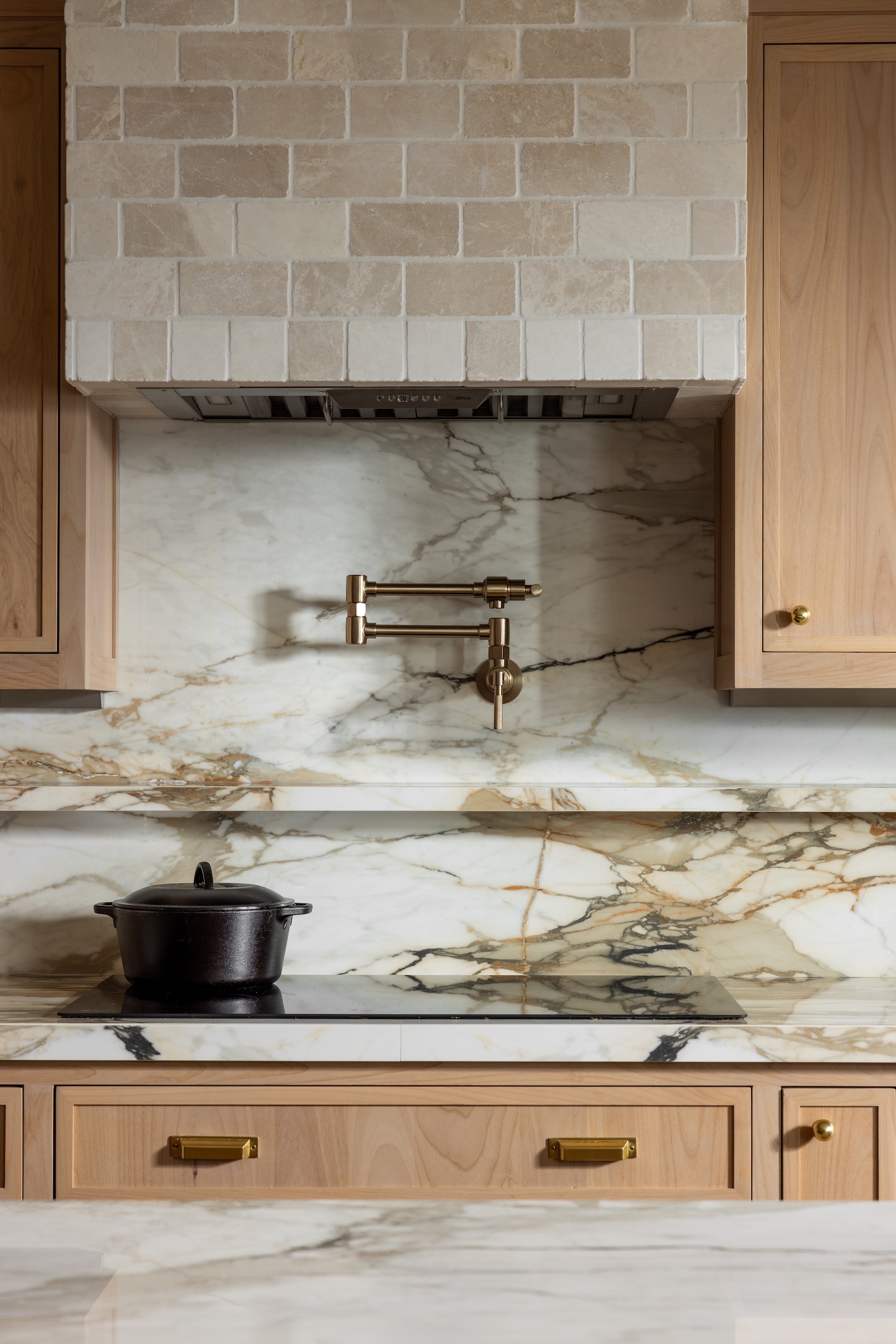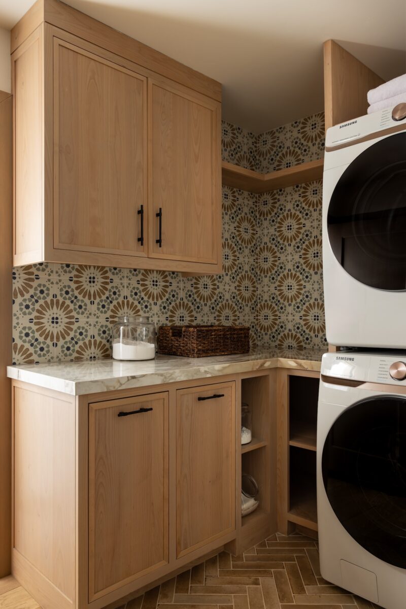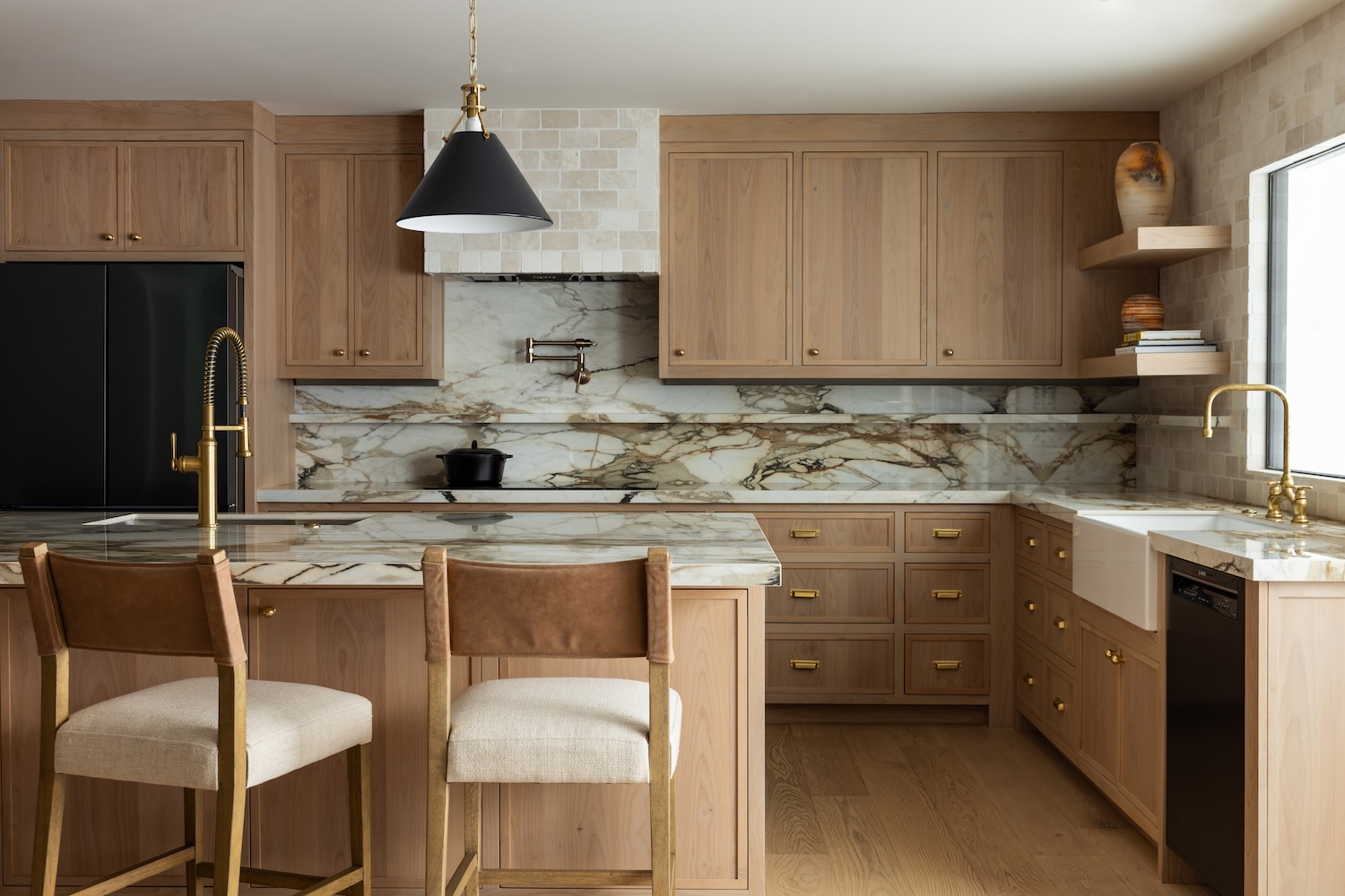 From Lulu Designs The design of this extensive remodel, showcasing light wood cabinetry, dramatic stone countertops, and refined brass accents, is what we call “Modern Organic Haven”. The blend of natural materials, contemporary fixtures, and warm, inviting tones, present in each space of the home we designed, took eight months to complete. Because of the new interior and exterior doors, floors, kitchens, baths, and furnishings, we touched each space and customized this new home to work for a future family of four.
