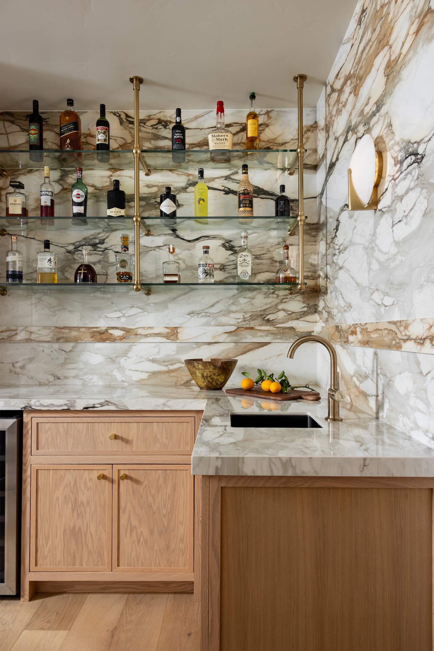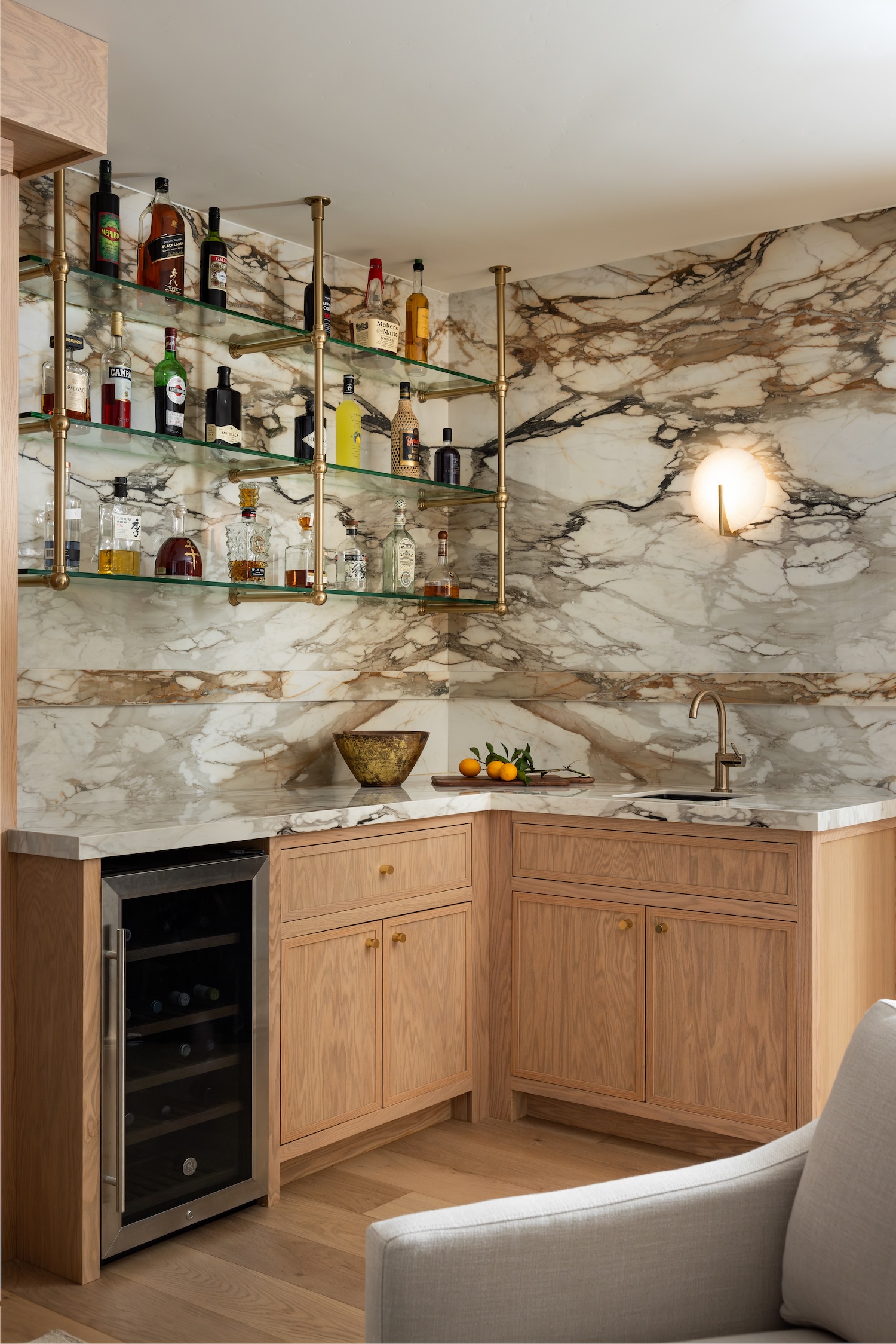 Once an ancillary room, the bar in the library was tailored to host lively gatherings, serve as a hub for book club, or double as a guest retreat complete with a hidden Murphy bed. With abundant natural light, it’s also the perfect spot for a moment of quiet away from the main living spaces.