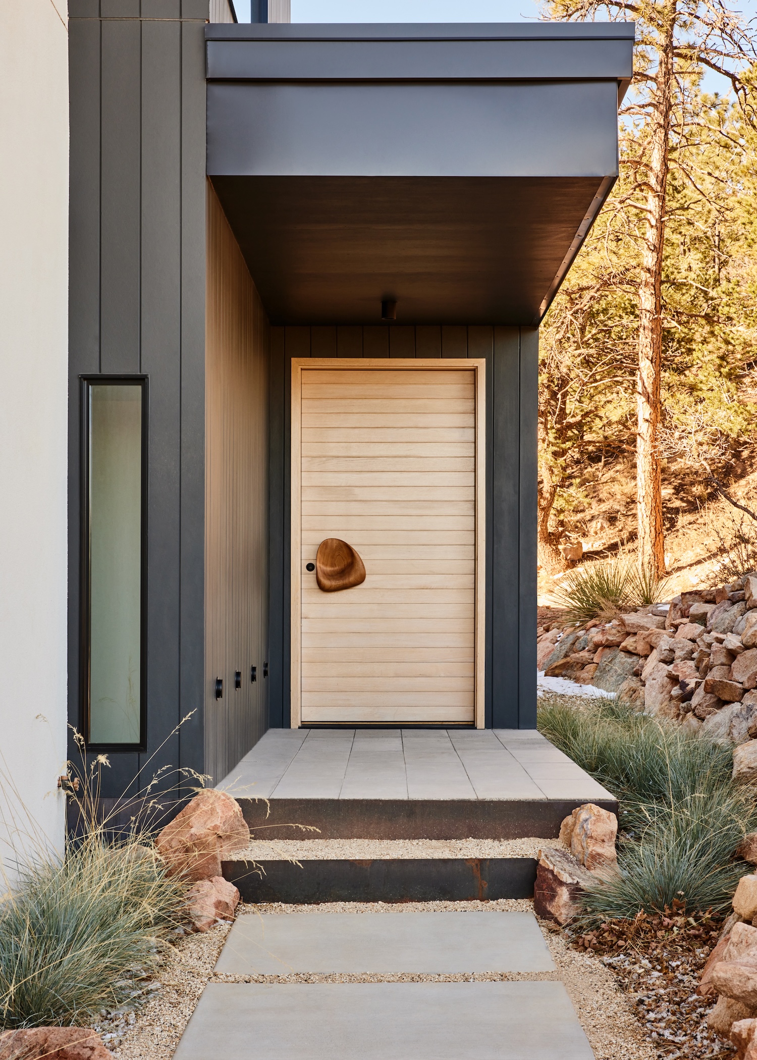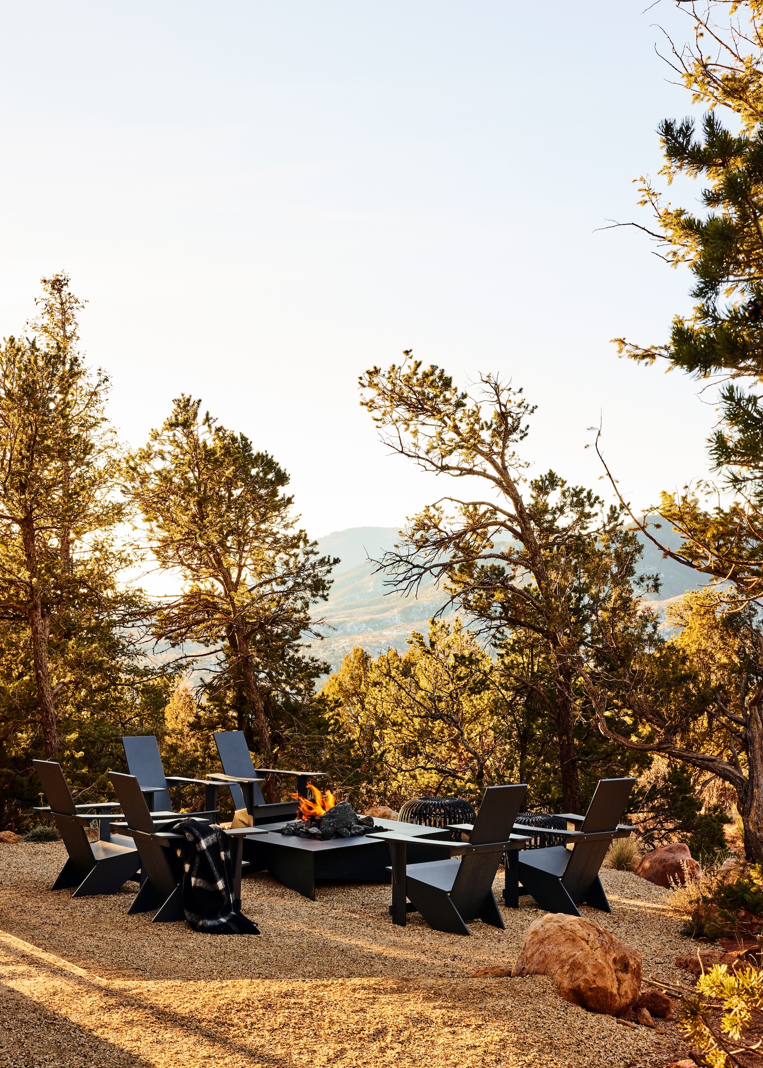 Hiking and camping are central to the clients’ lifestyle, and their vision was to live in a home that evoked the same intimacy with nature. They wanted the feeling of being nestled in the woods while still having access to breathtaking views.