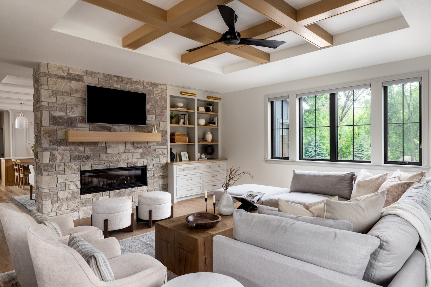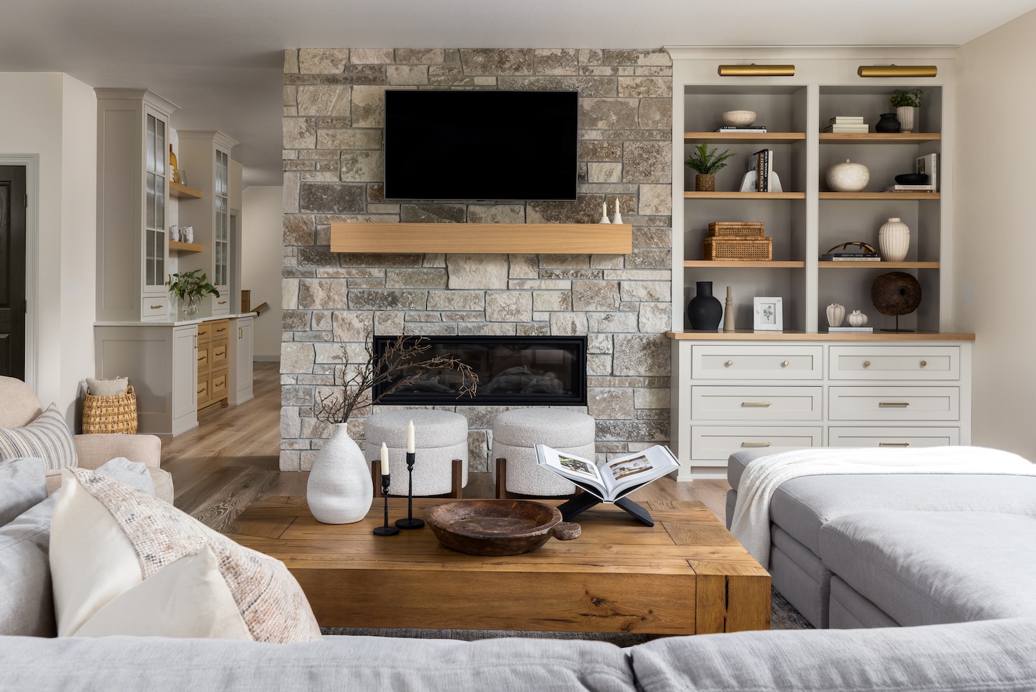 Blending practicality with transitional design, Katie Kern Interior Design collaborated with a seasoned general contractor to bring this North Dakota home to life. Photographed by Jill Ockhardt Blaufuss, the home balances durability and warmth, with thoughtful details that cater to the family’s lifestyle and pay homage to the surrounding wooded landscape.